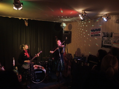 Cookie Tuesday mit ihrem Amifolkbluegrasstrala. Das war ganz nett, aber leider war mir eine der beiden Musikerinnen spontan unsympathisch, was in einem solchen Setup dann doch ein wenig den Spass verdirbt. Sogar der Verdacht "Musiklehrerin" wurde laut, aber ich war das nicht.